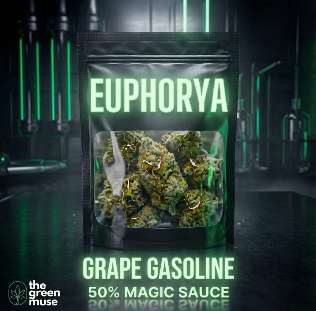 Bienvenido al siguiente nivel. Grape Gasoline 50% MAGIC SAUCE aterriza en The Green Muse con una presencia inconfundible. Esta no es una flor cualquiera; es una joya cultivada Indoor, diseñada exclusivamente para conocedores que no se conforman con lo estándar.